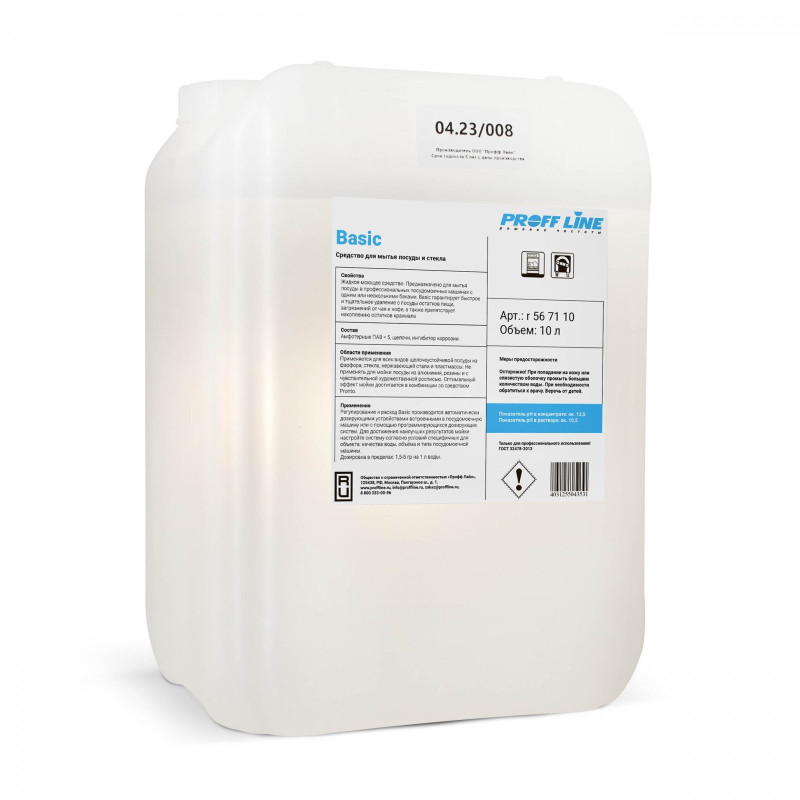 Регулирование и расход Basic производится автоматически дозирующими устройствами встроенными в посудомоечную машину или с помощью программирующихся дозирующих систем. Для достижения наилучших результатов мойки настройте систему согласно условий специфичных для объекта: качества воды, объёма и типа посудомоечной машины.
